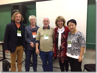 Markku Kaikkenon (Finland), Sarah Hennessy (UK), Wolfgang Hartmann (Orff Foundation Germany), myself, and Xu Mai (China) following our symposium presentation at ISME in Brazil 2014. |
